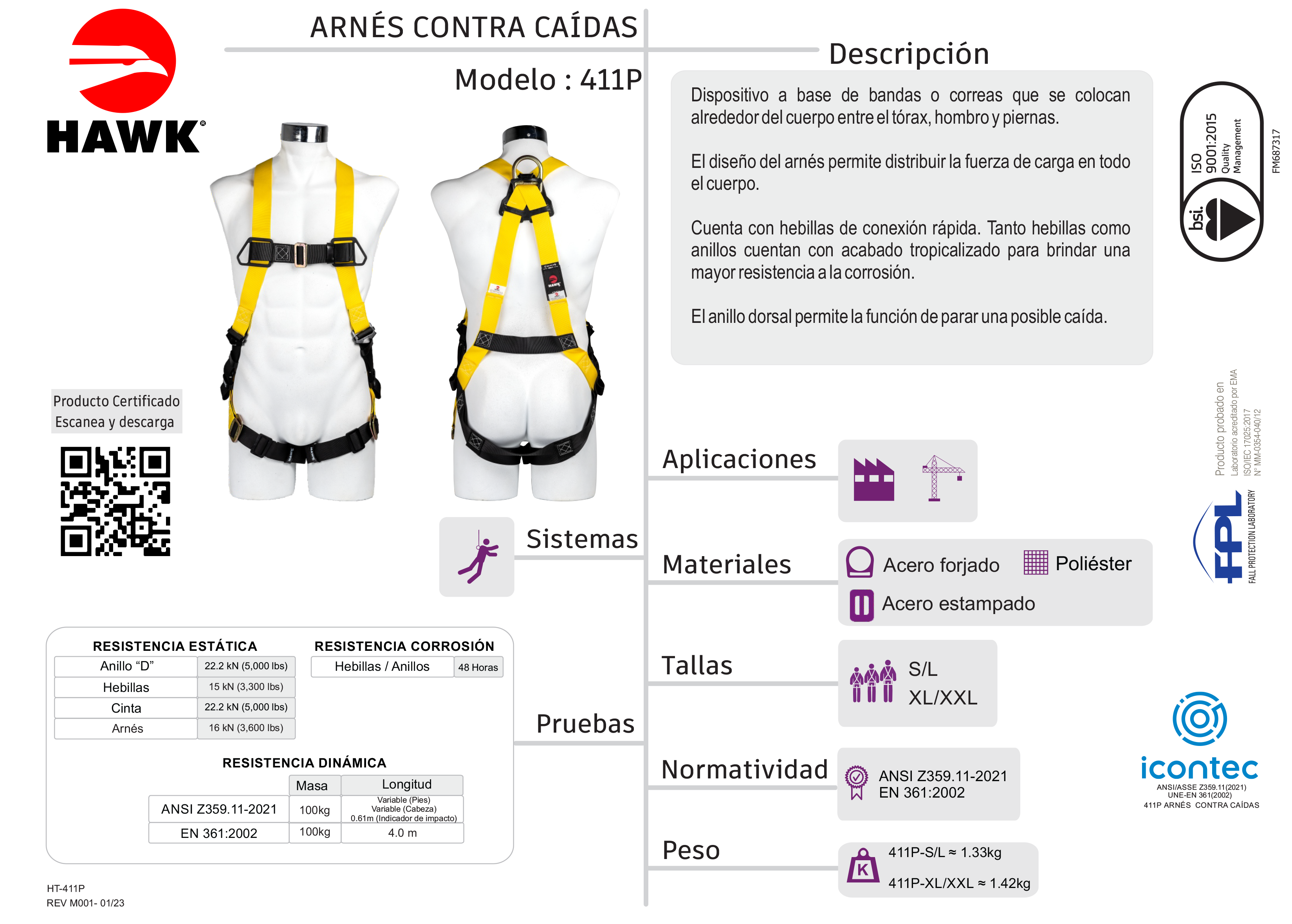 Arnés de seguridad HAWK GAMMA 411P-XL/XXL