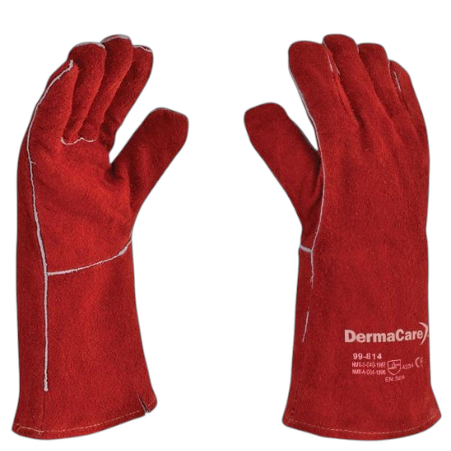 Guante de carnaza de res rojo, hilo Kevlar® y puño recto 14” pulgadas. Guante para soldador en carnaza de res curtida al cromo y doble engrase, tratado en base de aceites para mayor duración y flexibilidad, 14” pulgadas de largo, diseño tipo americano, con forro interior acojinado